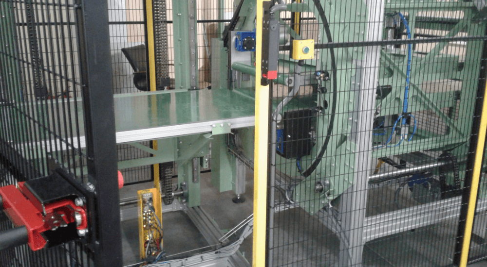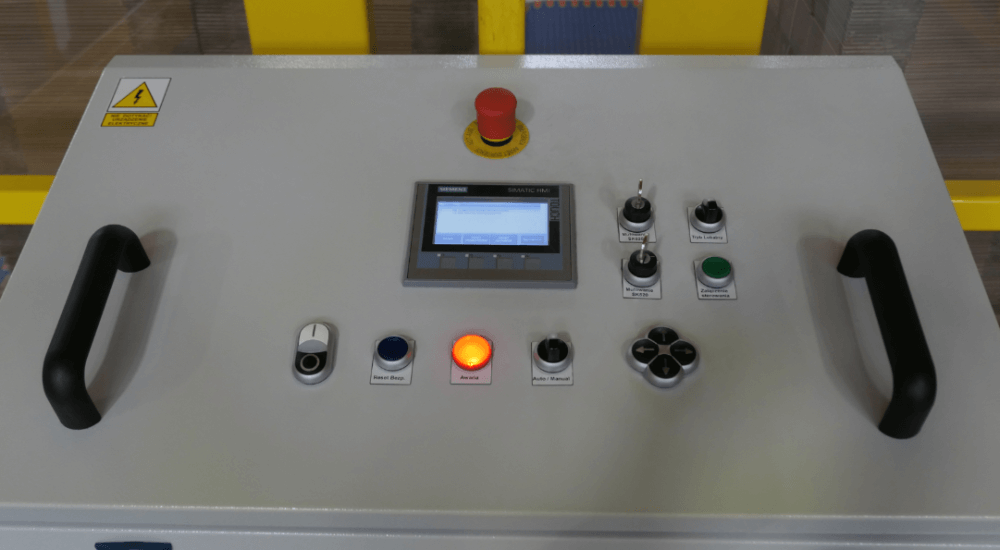 Projekt w branży kartoniarskiej obejmował zintegrowanie wiązarki i owijarki w linię pakującą. Klient zakupił nowe maszyny. Zakres prac obejmował wykonanie niezbędnych transporterów, wygrodzenia bezpieczeństwa, a także kompletną automatykę oraz sterowanie. Zainstalowane transportery, w tym wyrównywanie palet oraz wygrodzenia zostały zaprojektowane i wykonane przez nas. Całość zadania dopełniali nasi automatycy poprzez zintegrowanie automatyki i bezpieczeństwa linii. Prace montażowe transporterów, wygrodzeń, a także uruchomienie linii w pełnym automacie przeprowadziły nasze ekipy montażowo-serwisowe. Szkolenie pracowników Klienta zostało przeprowadzone wspólnie z dostawcami wiązarki i owijarki.